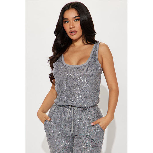 OfertaSexy Back Sequin Skirt Set