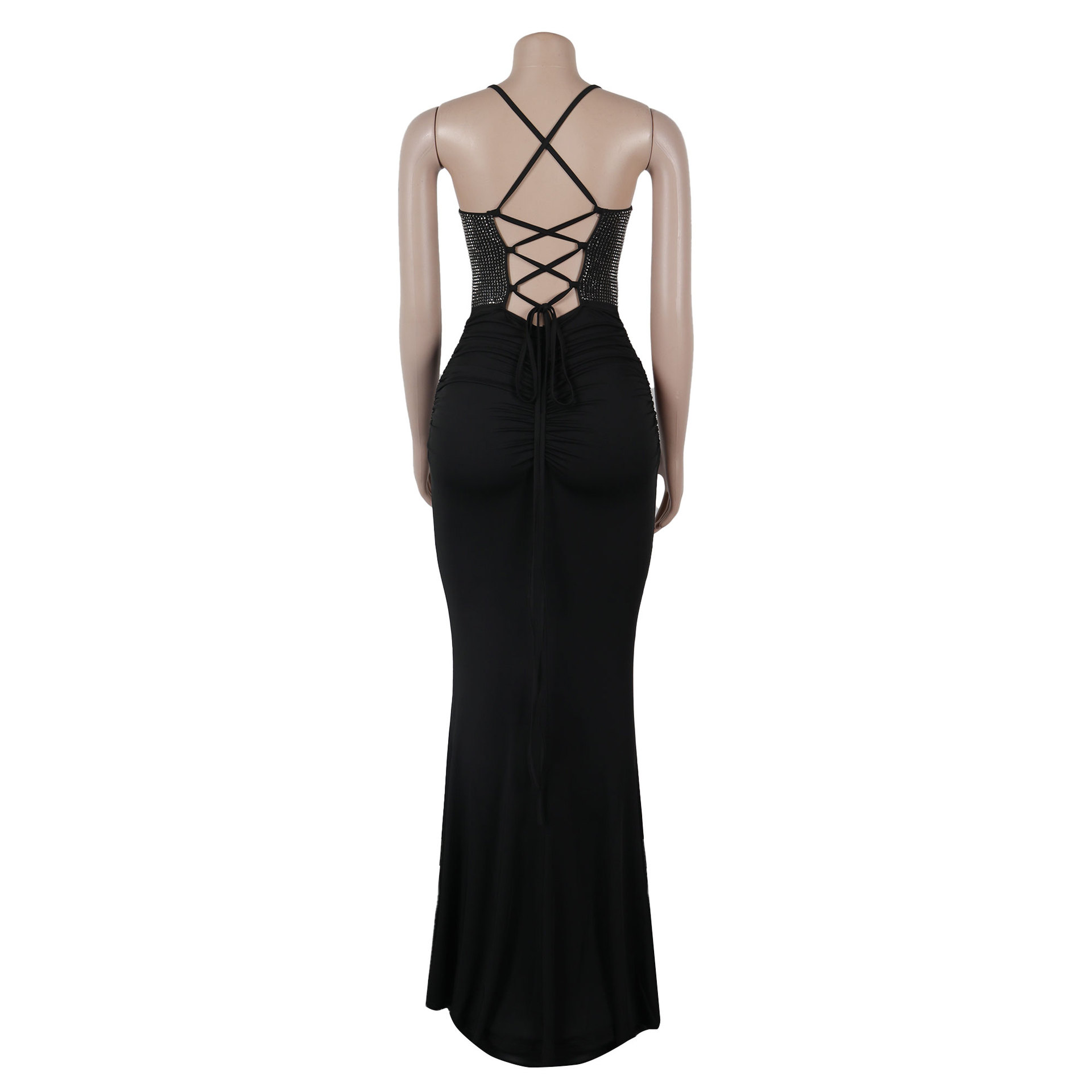Get ready to turn heads with this stunning Lace up Cutout Pleated Fishtail Dress! The lace-up design and cutout detailing add a touch of boldness to the elegant pleated fishtail silhouette. Perfect for a night out or special event, this dress will make you feel confident and glamorous.