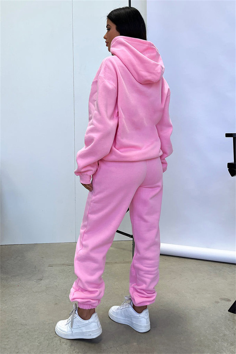 Solid Color Long Sleeve Hooded Fleece Lined Sweatsuit