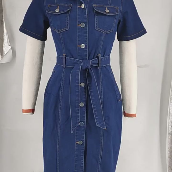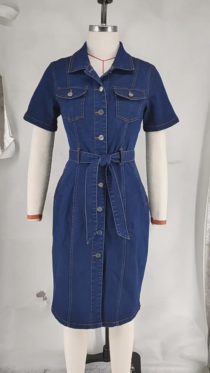Elevate your wardrobe with our Denim Collared Short Sleeve Dress. This versatile piece combines classic denim durability with a flattering silhouette that transitions effortlessly from casual daytime outings to evening gatherings. The collared neckline adds a sophisticated touch, while the short sleeves ensure comfort during warmer weather. Perfect for styling with sneakers or dressing up with heels – this essential dress will quickly become your go-to fashion staple.