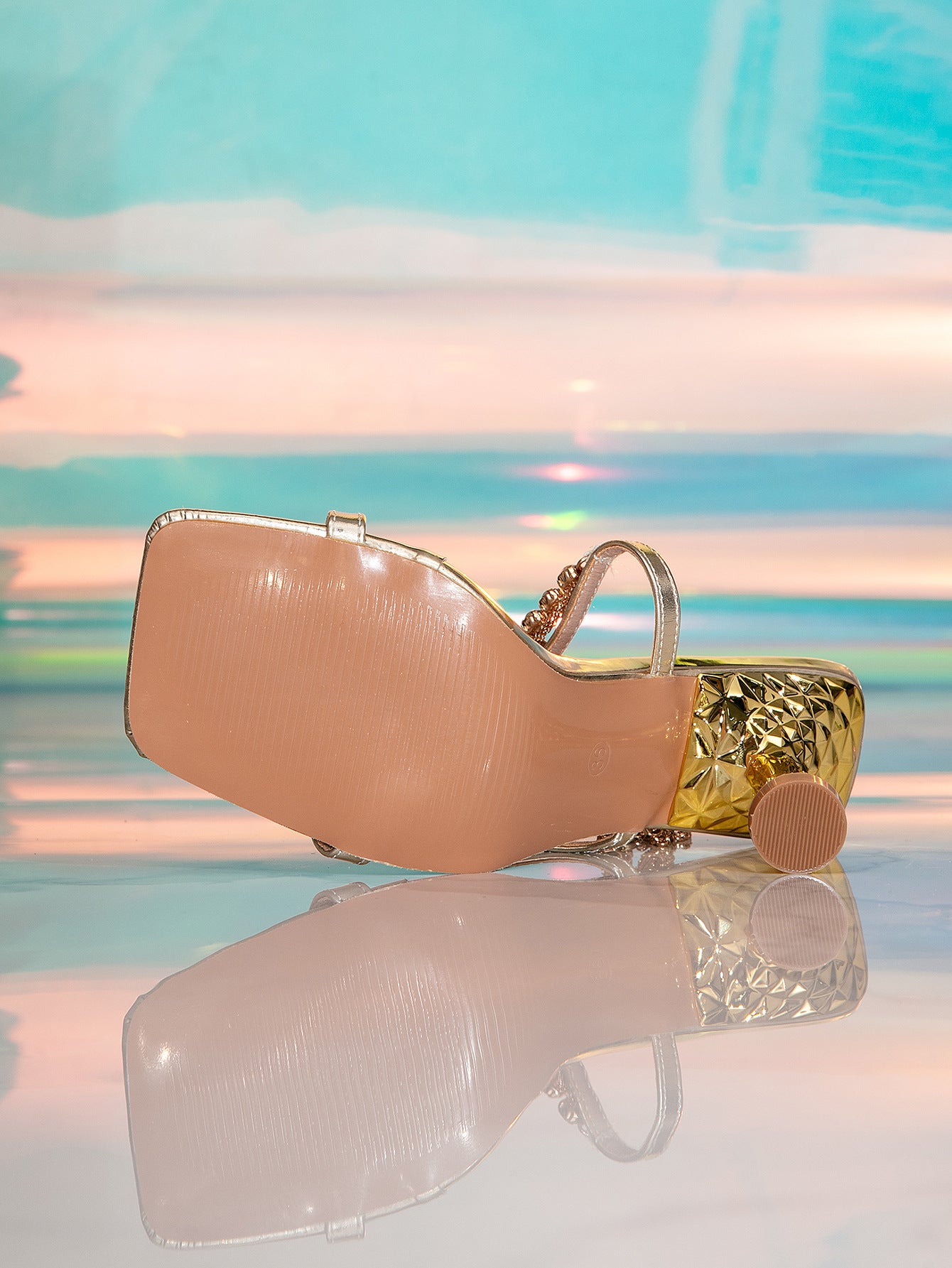 Elevate your style with our Gem Open Toe Stiletto High Heels. Crafted with a sleek design and open toe, these heels are perfect for any occasion. The stiletto heel and gem detailing add a touch of glamour while providing comfort and stability.