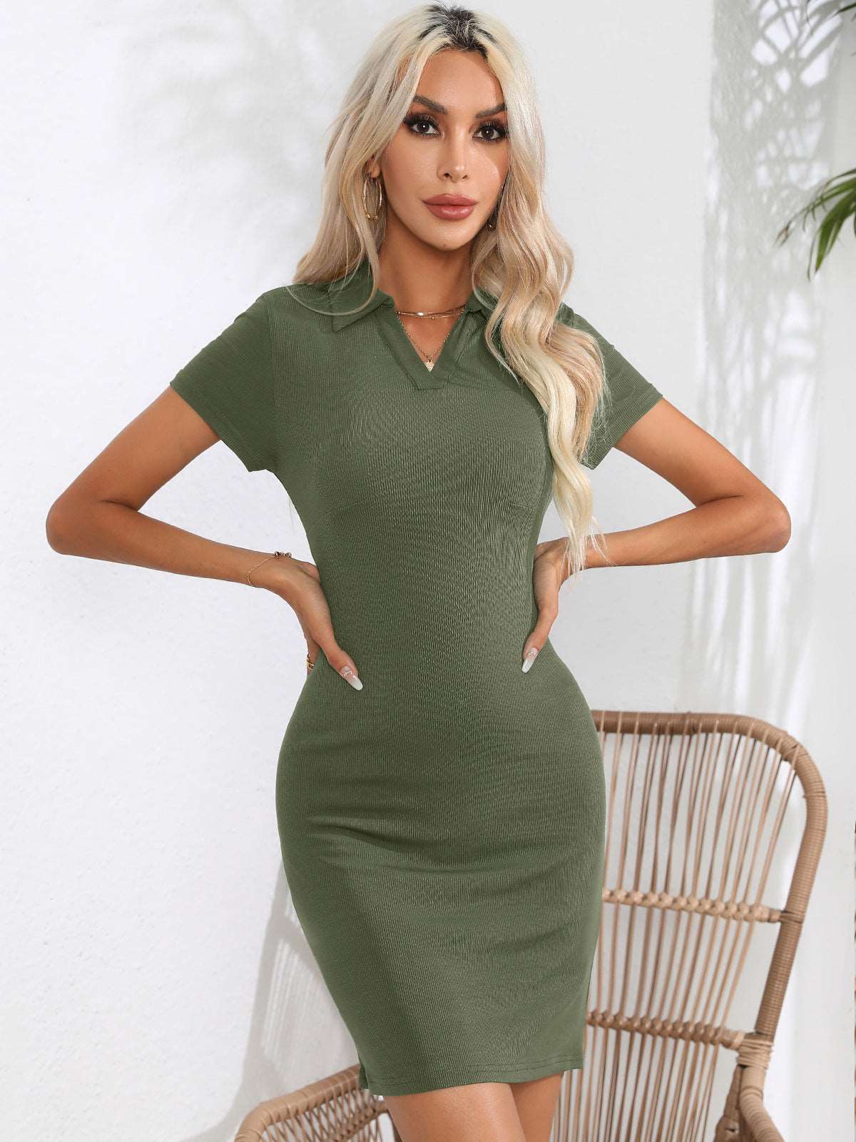Collared Short Sleeve Bodycon Dress