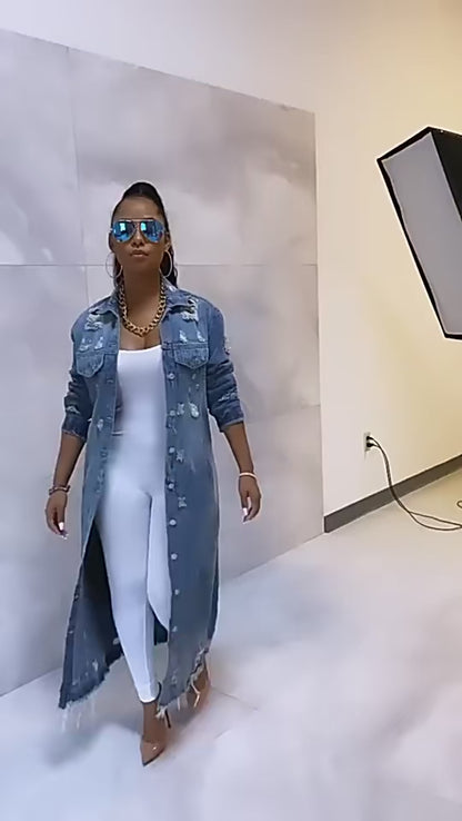 Step out in style with the Long Sleeve Raw Hem Denim Jacket! Featuring trendy raw hem edges, this jacket brings a fun twist to classic denim vibes. Perfect for adding a bit of edge to any outfit, it’s your new go-to for turning ordinary days into fashion moments. Ready to steal the spotlight? This jacket’s got you covered.