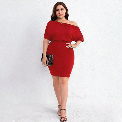 Elevate your style with our Plus Size Red Cross Shoulder Dress. The vibrant red hue and unique cross shoulder design will make you stand out in any crowd. Perfect for any event, this dress will not only flatter your curves but also make you feel confident and beautiful. Don't settle for ordinary, get our dress and make a statement!