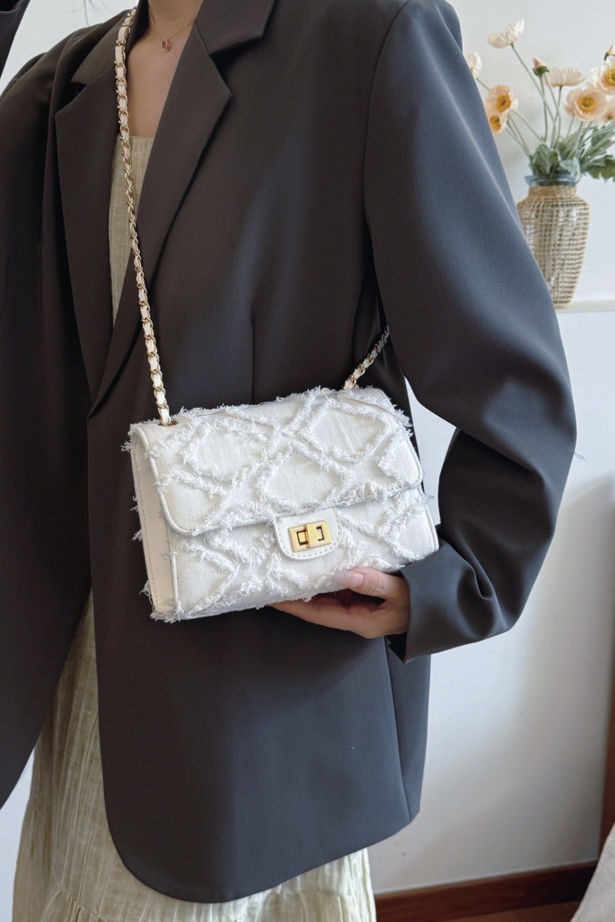 This Raw Hem Denim Crossbody Bag is a versatile and stylish addition to any outfit. Made from high-quality denim, it features a raw hem design for a unique touch. With a comfortable crossbody strap, this bag is perfect for everyday use and adds a touch of edge to your look.