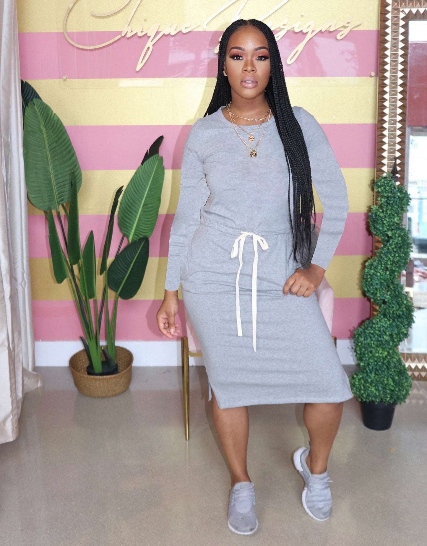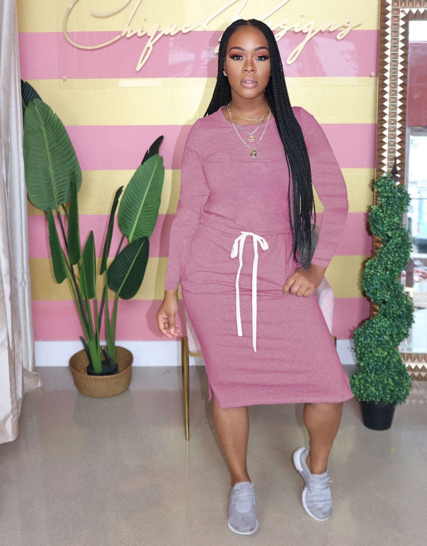 Elevate your style with our Drawstring Round Neck Long Sleeved Dress. This versatile piece features a drawstring round neck and long sleeves, perfect for any occasion. Comfortable yet chic, it adds a touch of elegance to your ensemble. Be effortlessly stylish with this must-have dress.