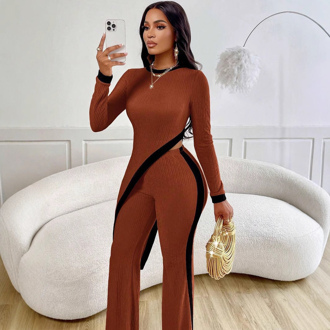 Get ready to make a statement with our Long Sleeve Contrast Split Two Piece Set! This set features a unique design with contrasting colors and a split hem, perfect for a bold and fashionable look. Stay comfortable and stylish all day long.