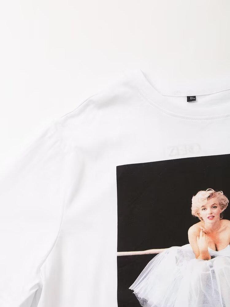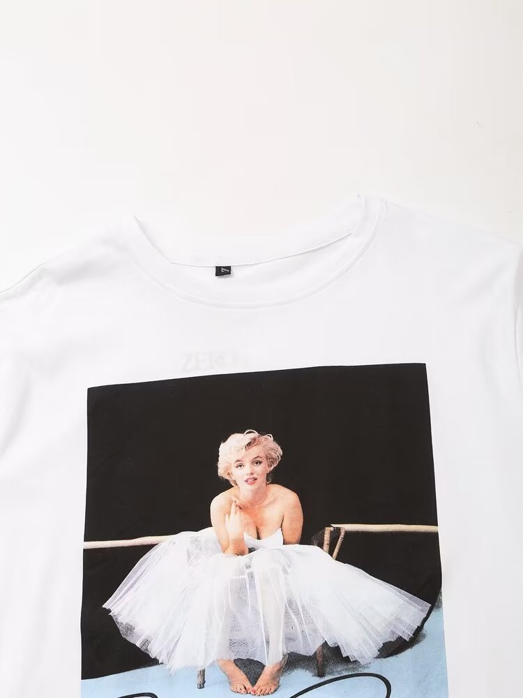 Unleash your inner glamour with our Marilyn Monroe Print T-shirt! This classic tee features a stunning print of the iconic Hollywood star, perfect for adding a touch of vintage charm to any outfit. Made with high-quality material, this shirt will make you feel confident and stylish!