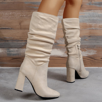 Step up your boot game with the Pleated Chunky Heel Boots! These boots are not only stylish with their pleated design and chunky heel, but also comfortable to wear. Add a touch of sophistication and elevate any outfit with these versatile boots.