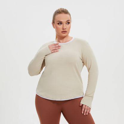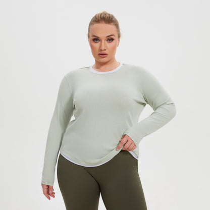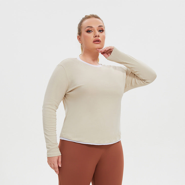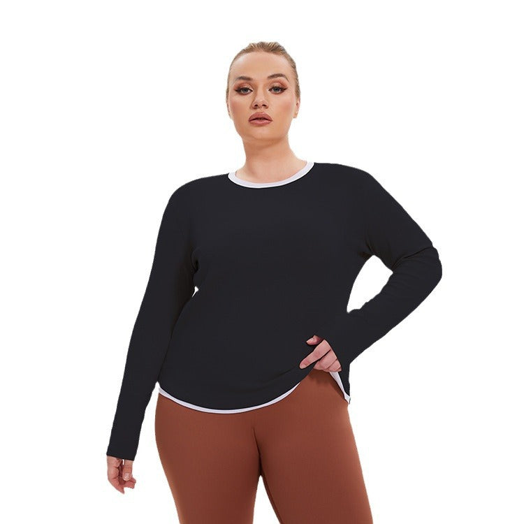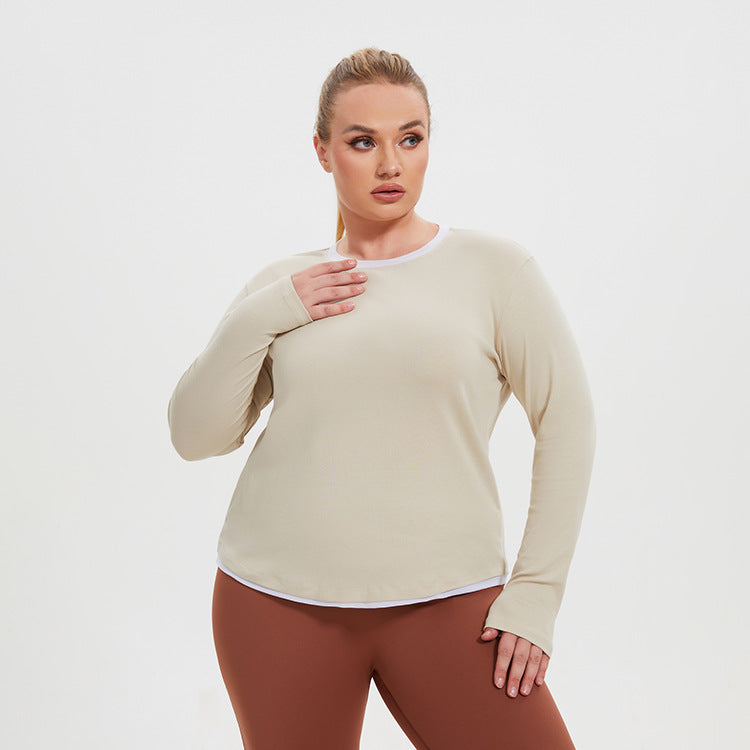 Plus Size Faux Two Piece Long Sleeve Workout Top