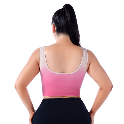 This Plus Size Gradient Sports Bra offers maximum support and comfort for any workout. Its gradient design not only adds a touch of style but also enhances breathability. With its plus size fit, this bra is perfect for all body types. Say goodbye to uncomfortable sports bras and hello to ultimate confidence and performance.