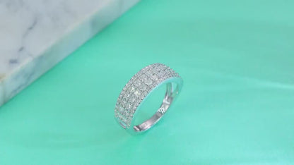 Add some sparkle to your look with our Silver Multi-row Moissanite Ring! Crafted with precision and designed to catch the eye, each row of shimmering moissanite stones adds a touch of elegance. Perfect for any occasion, this ring is sure to make you shine.