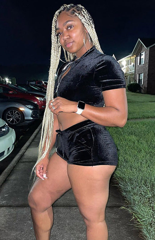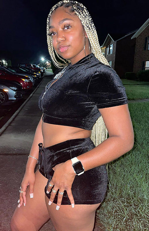 Velvet Sexy Two-piece Short Set